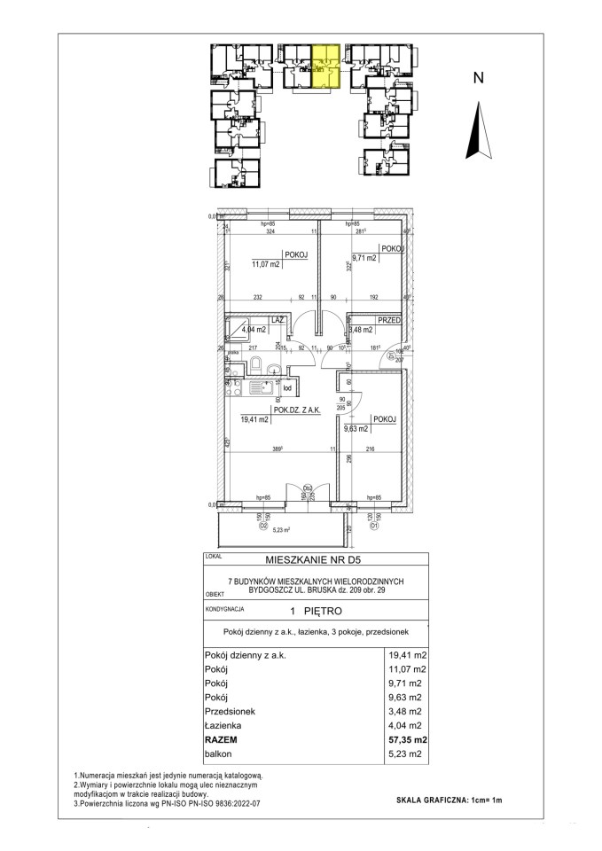 • Powierzchnia: 57,35 m²